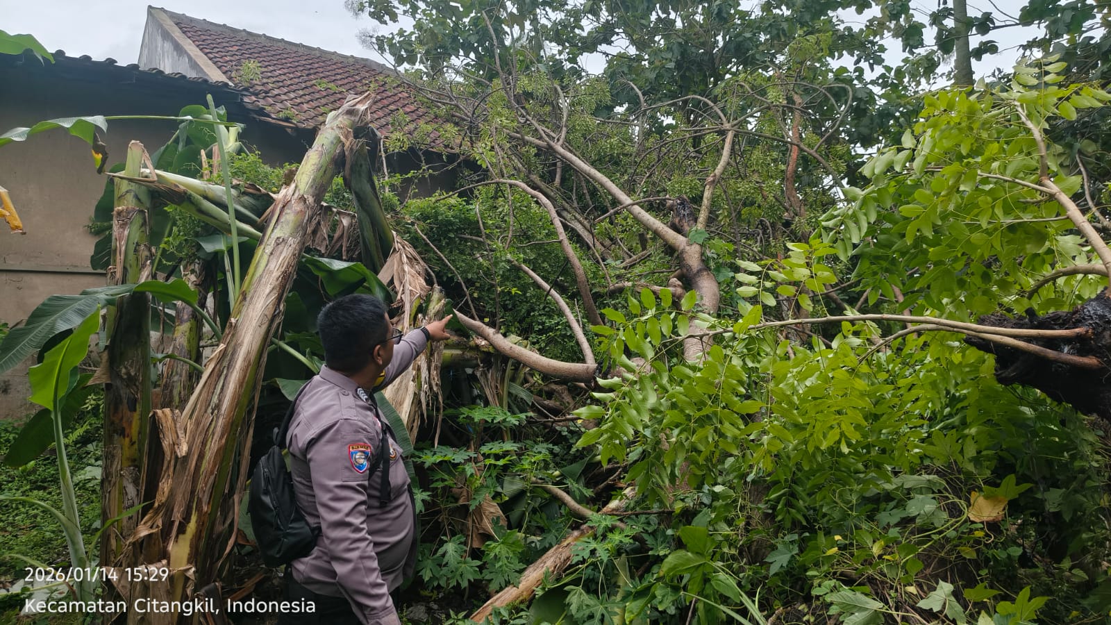Cilegon - Bhabinkamtibmas Kelurahan Samangraya BRIPKA Marisco bersama Tagana Kota Cilegon dan perangkat RW dan RT, membantu membersihkan area rumah Sdri. IIN yang tertimpa pohon tumbang di Link. Kubang Welut Rt 06/04 Kel. Samangraya. Kamis (15/01/2026).Kejadian itu terjadi sekitar pukul 01.00 WIB, menyebabkan genteng atap dapur rusak. Kerugian materiil diperkirakan Rp...