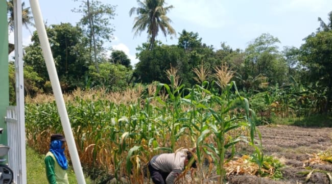 Kontrol pertumbuhan tanaman jagung, bhabinkamtibmas Polsek Pulomerak gandeng Poktan lebakgede