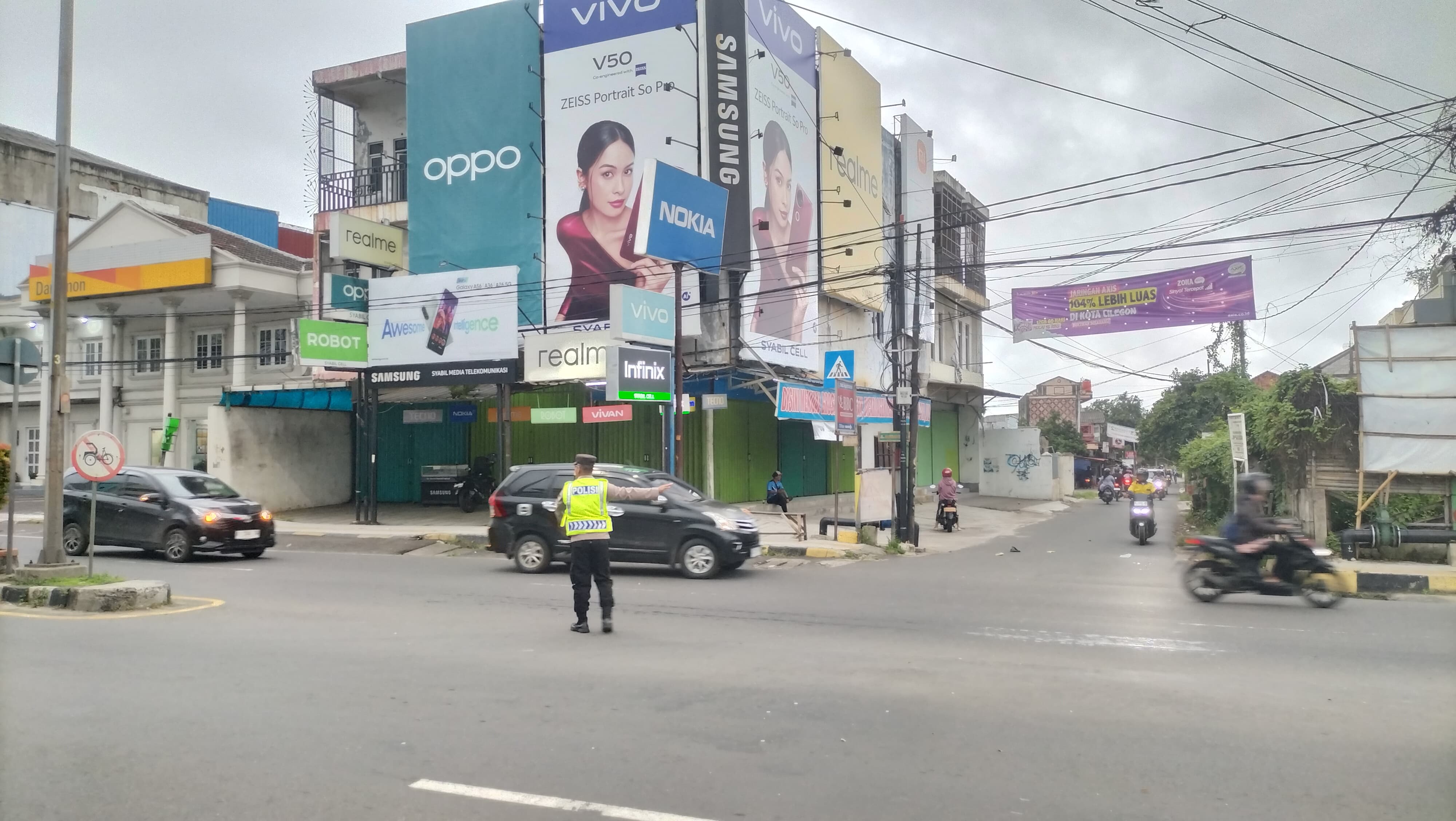 Cilegon, Polres Cilegon Polda Banten Pada hari Senin,28 April 2025 Pukul 06.30 WIB s.d 07.30 WIB Personel Satpamobvit Polres Cilegon, Bripka Juli irpan melaksanakan kegiatan pengaturan arus lalu lintas di Jalur Kota Cilegon tepatnya pada Simpang Ex Sate Cilegon.