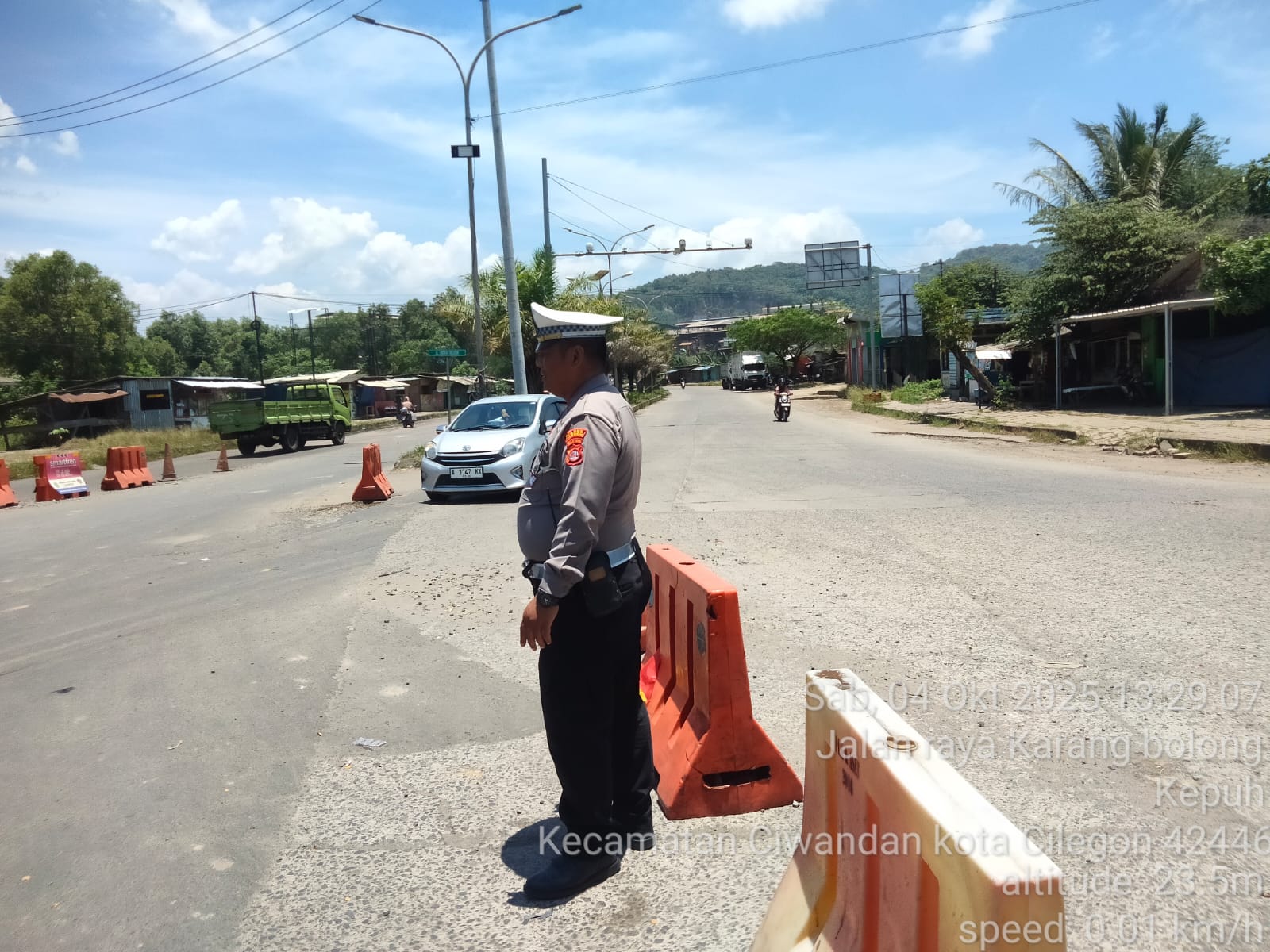 Cilegon - Pada Weekend kali ini Personil Unit Lantas Polsek Ciwandan Polres Cilegon Polda Banten melaksanakan pengaturan lalu lintas di Simpang JLS tepatnya di Pertigaan depan PT. Semen Indonesia Demi Kelancaran Arus Lalu-lintas Wisata, Sabtu (04/10/2025).