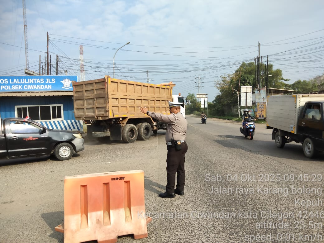 Cilegon - Pada Weekend kali ini Personil Unit Lantas Polsek Ciwandan Polres Cilegon Polda Banten melaksanakan pengaturan lalu lintas di Simpang JLS tepatnya di Pertigaan depan PT. Semen Indonesia Demi Kelancaran Arus Lalu-lintas Wisata, Sabtu (04/10/2025).
