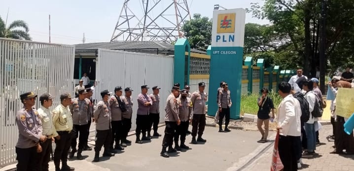 POLRES CILEGON- Polda Banten. Kegiatan Apel Pengamanan Kegiatan Aksi Unjuk Rasa Dari Aliansi Mahasiswa Banten Di Pimpin Langsung Kapolsek Purwakarta Polres Cilegon IPTU Sukanda di Lapangan Kantor UPT.PLN Kelurahan Kotabumi Kecamatan Purwakarta Kota Cilegon.Senin.(06/10/2025).