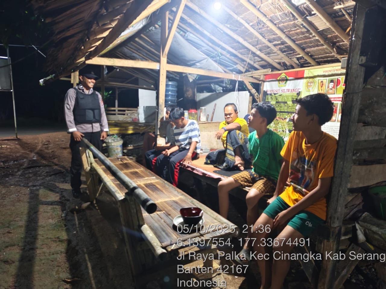 *Polres Cilegon* || Personil Bhabinkamtibmas Polsek Cinangka melaksanakan Program Komandan Wish Kapolda Banten RONDA SATKAMLING menyampaikan komunikasi dengan Petugas Siskamling agar berperan aktif dalam menciptakan Harkamtibmas yang aman dan Kondusif, Senin (06/10/2025).