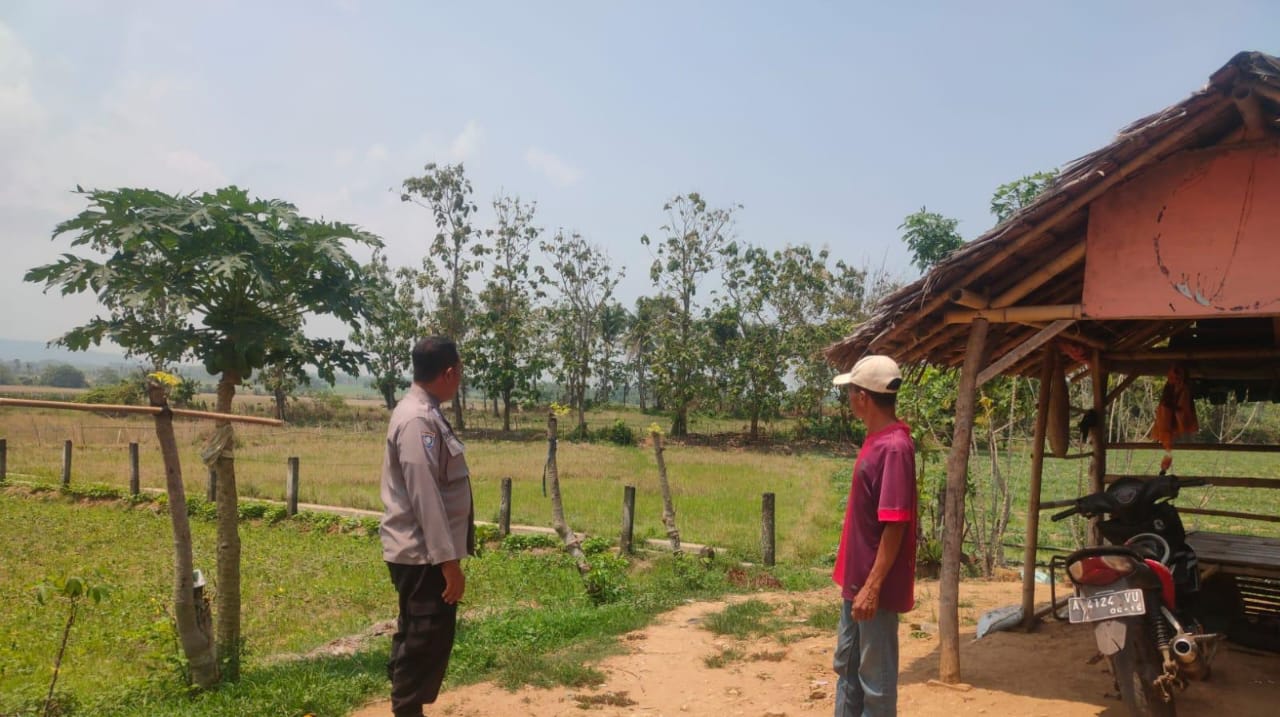 Personil Bhabinkamtibmas Polsek Anyar Monitoring Lahan Tanaman Jagung Bersama Poktan