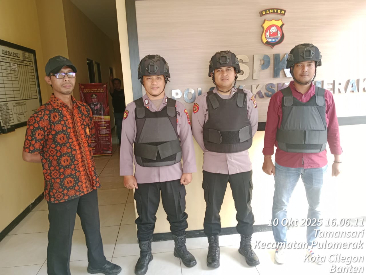Cilegon - Personel piket jaga Polsek Kskp Merak Polres Cilgon Polda Banten melaksanakan siaga 1 Polsek pelaksanaan Sispam Mako oleh piket siaga dipimpin oleh Kspk Polsek Kskp Merak Polres Cilegon Polda Banten, Jumat (10/10/2025).