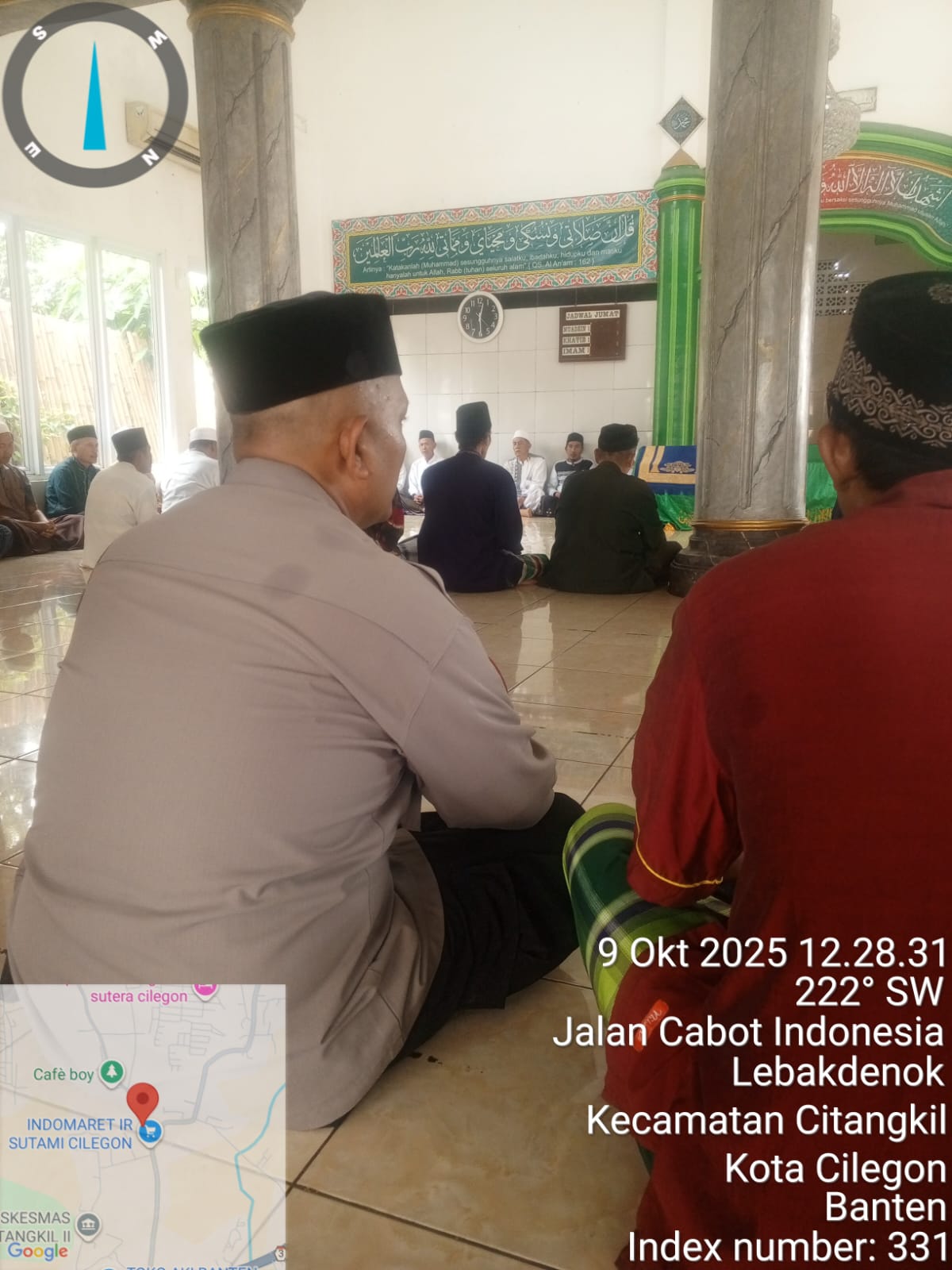Cilegon - Dalam Rangka Implementasi Program Kapolda Banten Yaitu Sholat Jum’at Keliling Dan Berjama’ah Serta Memakmurkan Masjid, Bhabinkamtibmas Polsek Ciwandan Polres Cilegon Polda Banten Sholat Berjama’ah dan Bersilaturahmi Bersama masyarakat sebagai upaya meningkatkan Ukhuwah Islamiyah dalam menjalin silaturahmi dan membangun komunikasi yang baik,Jum’at (09/19/2025).