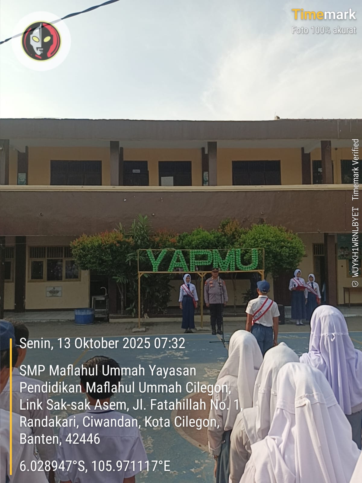 Cilegon – Kanit Samapta Polsek Ciwandan AKP Sarpan Bersama Bhabinkamtibmas Polsek Ciwandan Polres Cilegon Polda Banten Dalam Menyambangi Sekolah-Sekolah Guna Menyampaikan Pesan-pesan Kamtibmas Dan Memberikan Penyuluhan Terkait Kenakalan Remaja, Senin (13/10/2025).