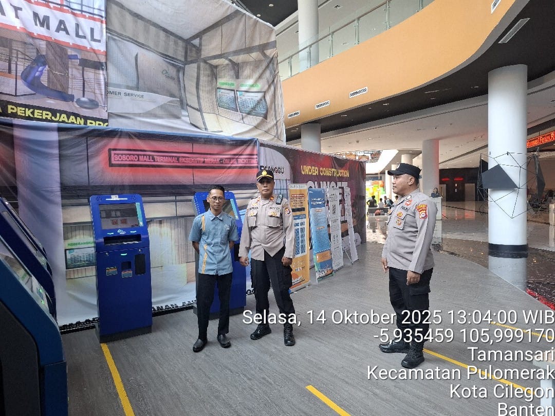 Cilegon - Personel Polsek Kskp Merak Polres Cilegon Polda Banten melaksanakan sambang dan patroli kawasan pelabuhan merak dalam rangka menjaga Harkamtibmas di Kawasan Pelabuhan Merak, Selasa (14/10/2025).