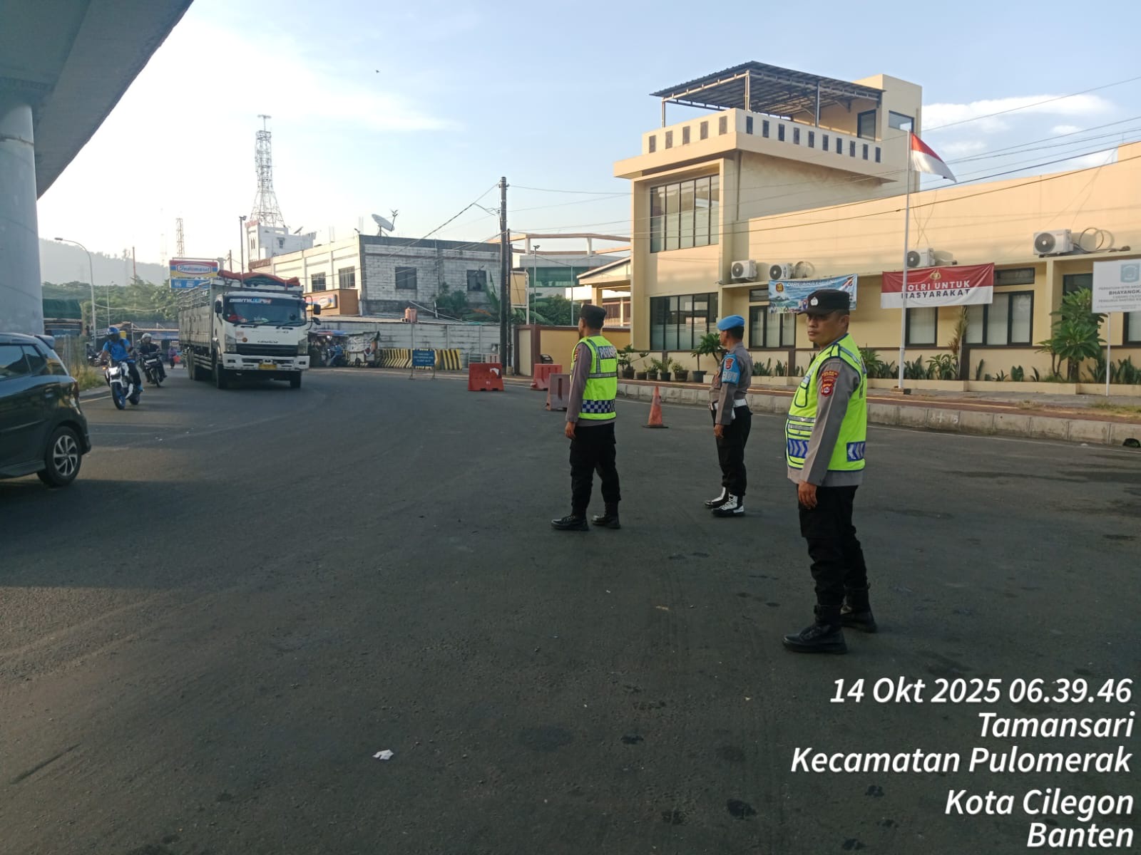 Cilegon - Dalam rangka peningkatan pelayanan prima kepada masyarakat, Kskp Merak Polres Cilegon Polda Banten melaksanakan pengaturan antrian R4 yang akan masuk ke Kapal Ferry di Pelabuhan Merak, Selasa (14/10/2025).