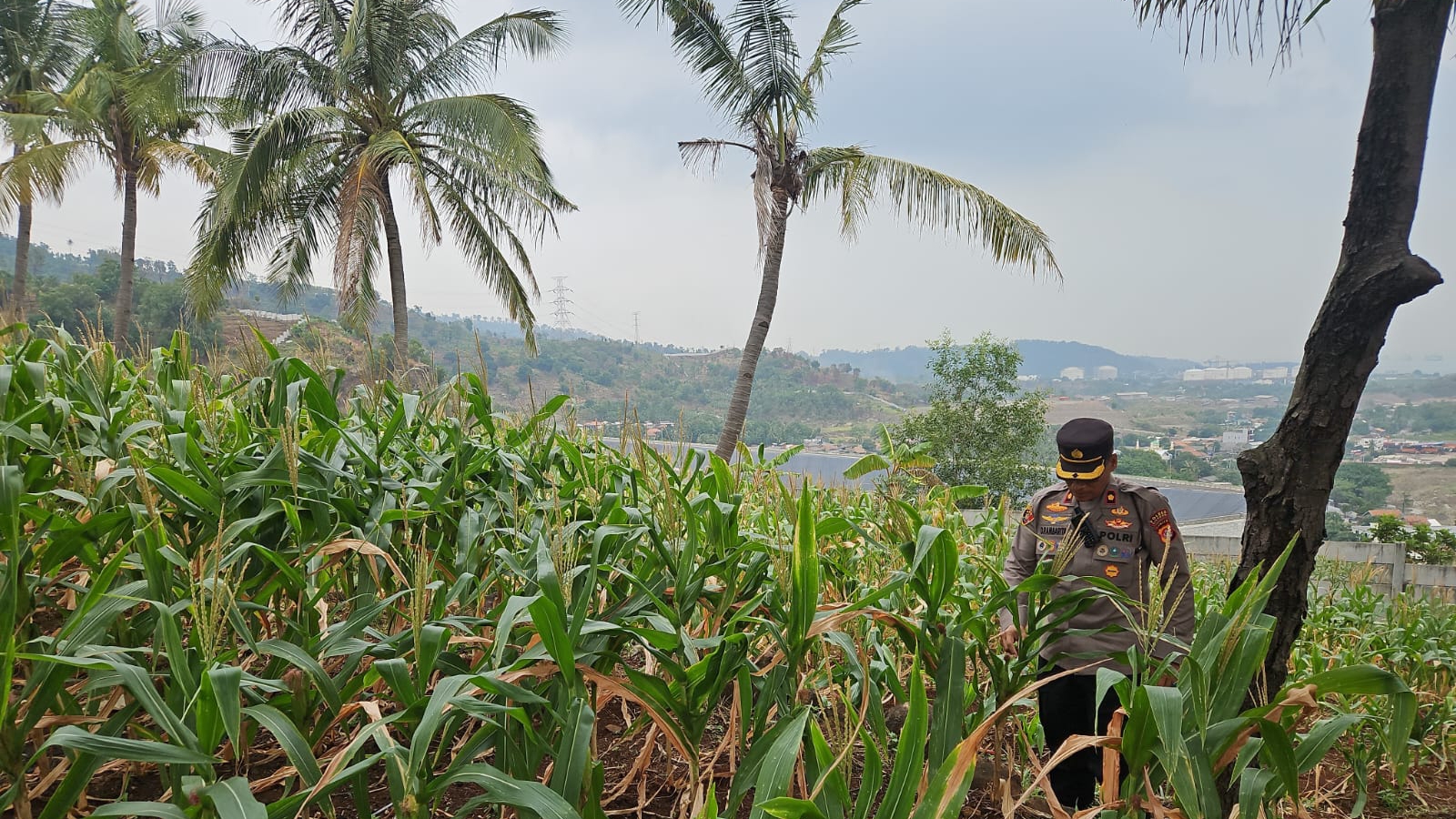 Oleh sebab itu Kapolsek Pulomerak bersama bhabinkamtibmas polsek Pulomerak bersama masyarakat Kel. Lebakgede kec. Pulomerak meninjau lahan jagung, ujarnya