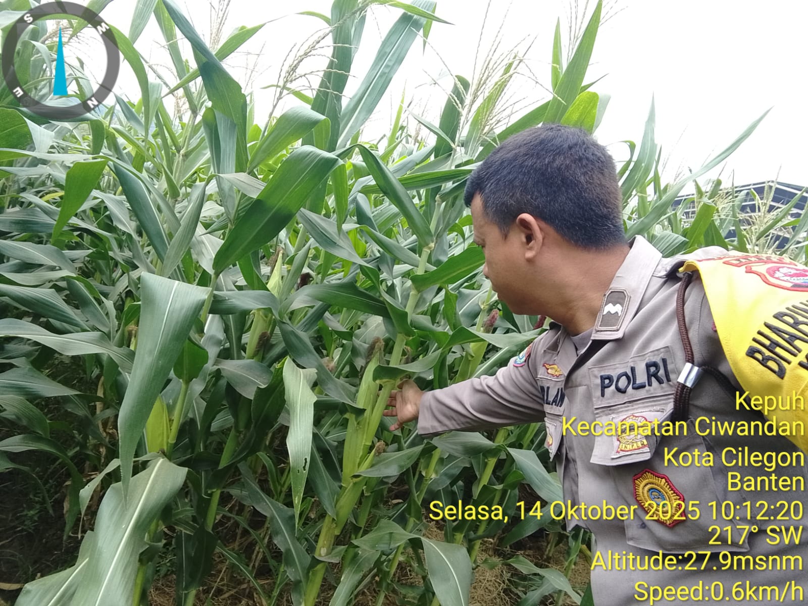 Cilegon - Dalam rangka memberikan dukungan kepada Pemerintah terkait Ketahanan pangan, Bhabinkamtibmas Ciwandan Polres Cilegon Polda Banten melaksanakan Implementasikan Program Asta Cita Presiden dengan fokus pada sektor Pertanian tanaman Jagung dilingkungan Binaan,Selasa (14/10/2025).