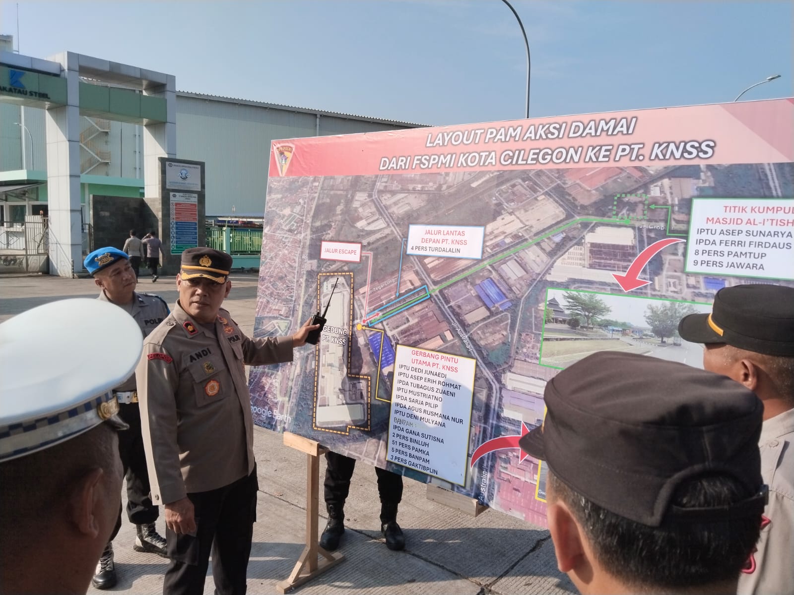 Kapolres Cilegon Polda Banten AKBP Dr. Martua Raja Taripar Laut Silitonga Melalui Kapolsek Ciwandan Polres Cilegon Polda Banten KOMPOL Andi Suherman Mengatakan bahwa Dengan kekuatan personil sebanyak 105 orang, apel pengamanan ini dilaksanakan untuk memastikan keamanan dan ketertiban selama aksi damai berlangsung.