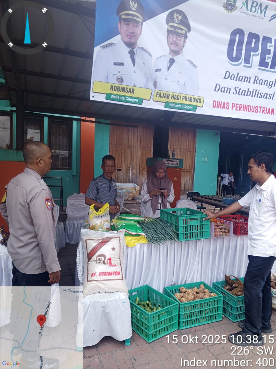 Cilegon - Operasi Pasar Murah Kali ini Bertempat di Halaman Kantor kelurahan Lebak Denok Kecamatan Citangkil Kota Cilegon,Bhabinkamtibmas Kelurahan Lebak Denok AIPTU Yudi Setiawan Melaksanakan Pengamanan di Lokasi, Rabu (15/10/2025).