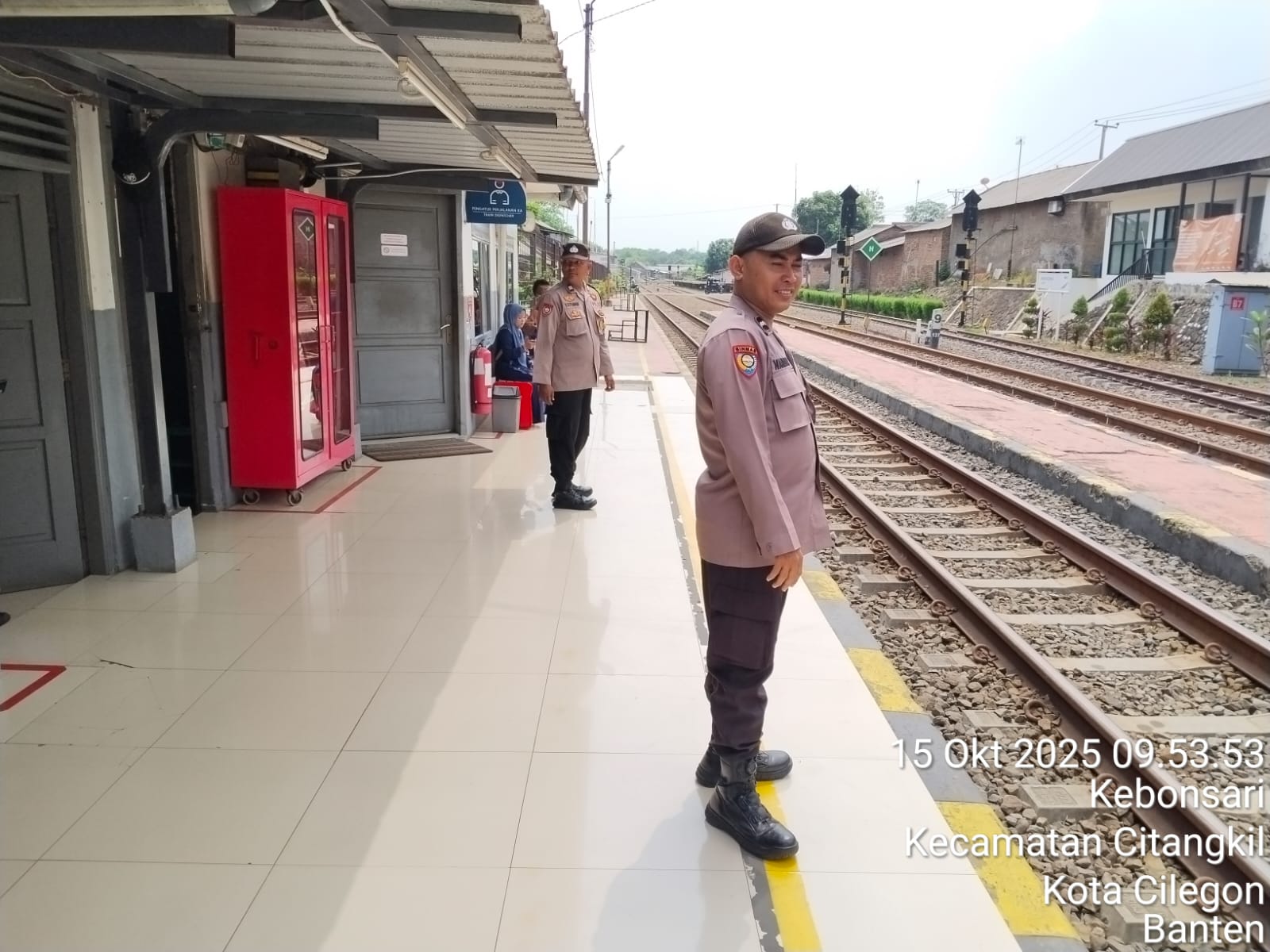Cilegon - Personil Polsek Ciwandan Polres Cilegon Polda Banten melaksanakan giat patroli Dan dengan sambangi Petugas Stasiun Kereta Api dan penjaga pintu perlintasan kereta api,Rabu (15/10/2025).