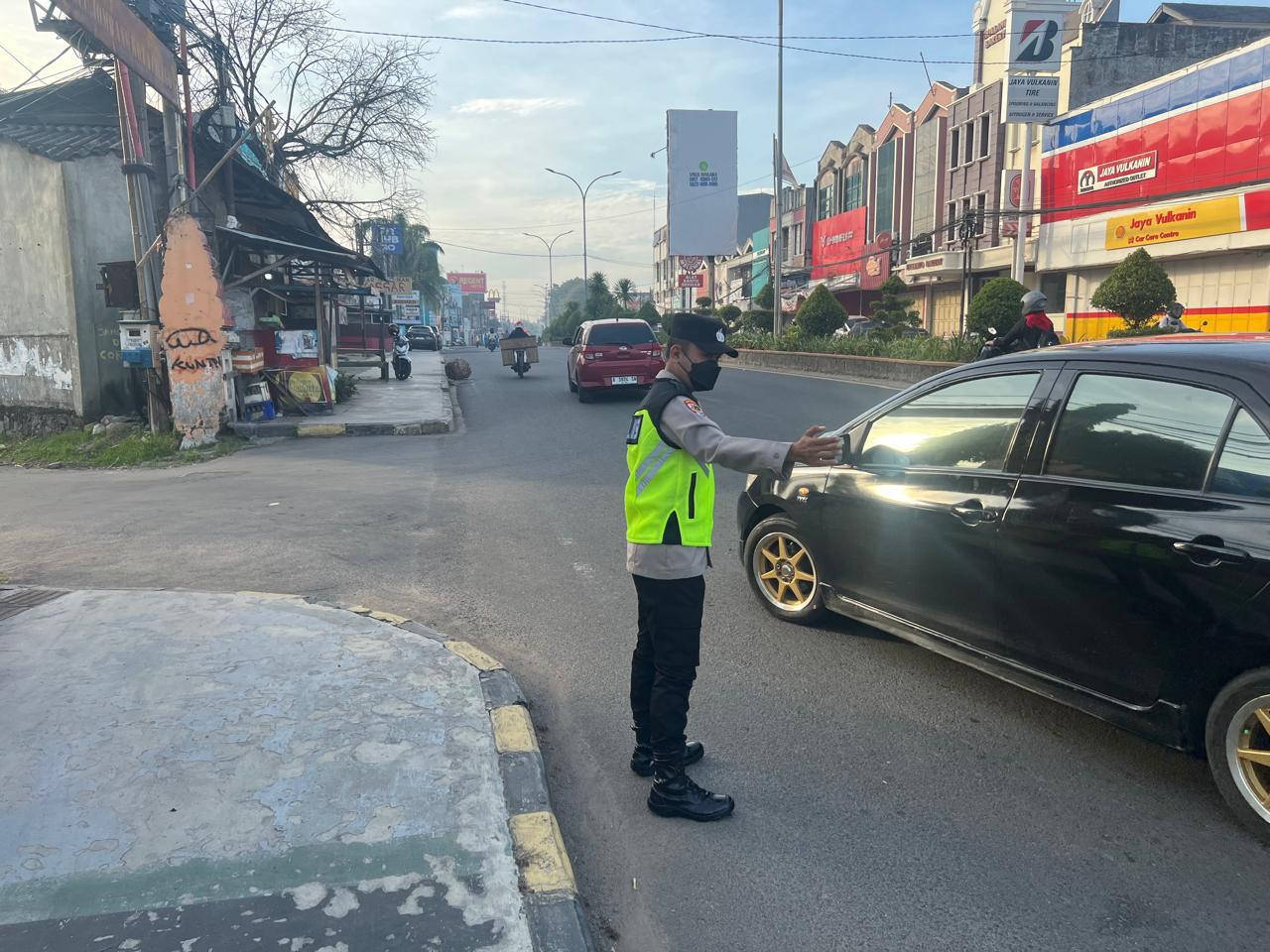 giat rutin pengaturan lalu lijtas selalu di terapkan dan pada anggota polres cilegon di setiap pagi