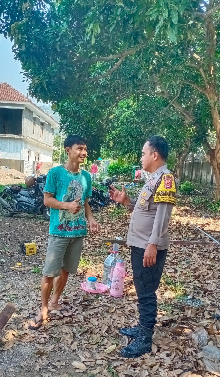 Bhabinkamtibmas Desa berkesinambugan untuk sambang warganya mengajak untuk berbincang-bincang yang menyangkut kepentingan