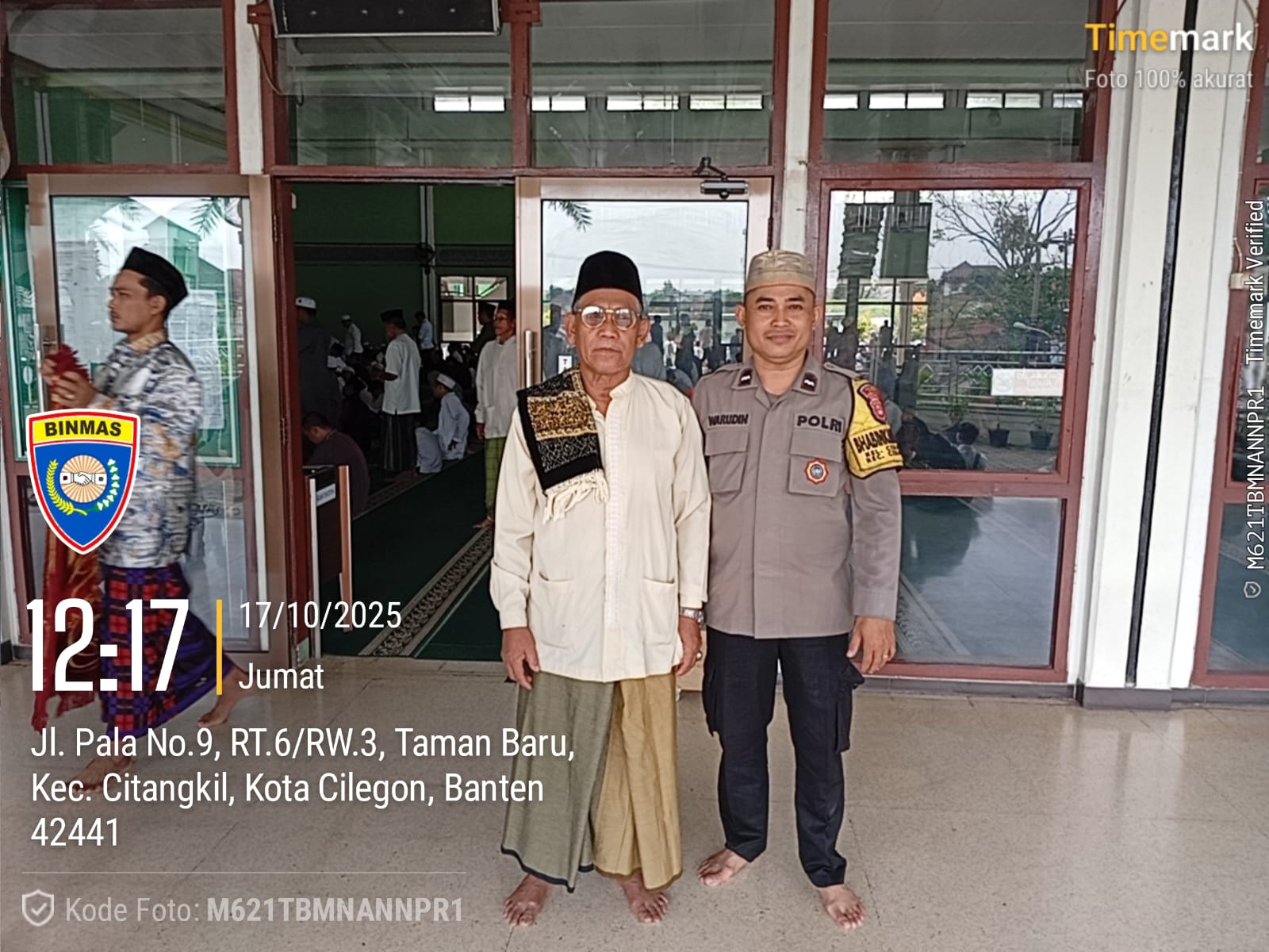 Cilegon - Bhabinkamtibmas Polsek Ciwandan Polres Cilegon Polda Banten Selesai melaksanakan Sholat Jum’at secara berjama’ah dan Sampaikan Himbauan-himbauan Kamtibmas Kepada Masyarakat Jama'ah Yang ada Dimasjid, Jum’at (17/10/2025).