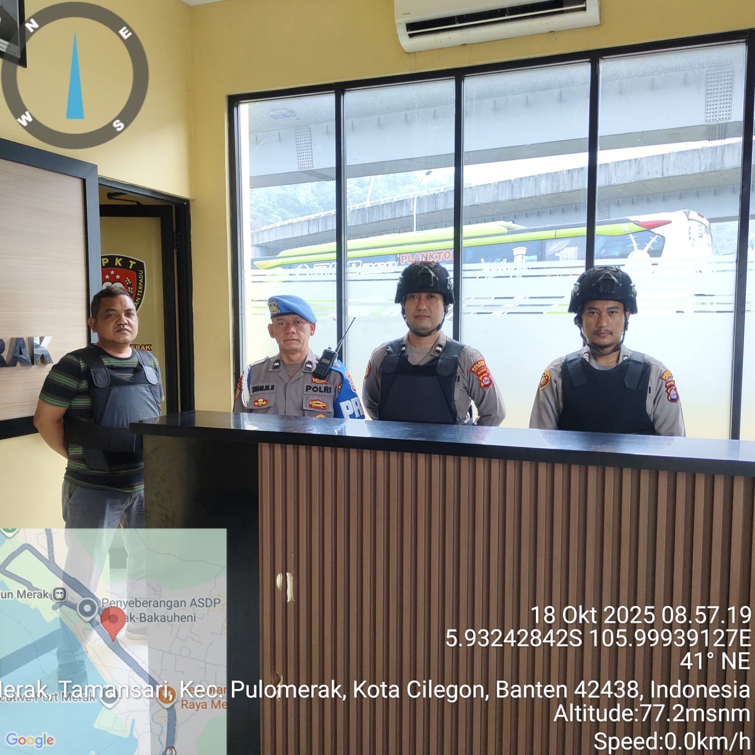 Cilegon - Personel piket jaga Polsek Kskp Merak Polres Cilgon Polda Banten melaksanakan siaga 1 Polsek pelaksanaan Sispam Mako oleh piket siaga dipimpin oleh Kspk Polsek Kskp Merak Polres Cilegon Polda Banten, Sabtu (18/10/2025).