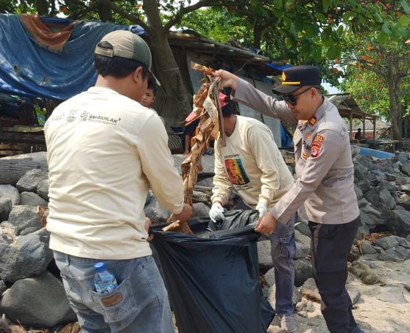 KaPolsek Anyar beserta Anggota mengikuti kegiatan Bersih Sampah Di Pantai-Pantai