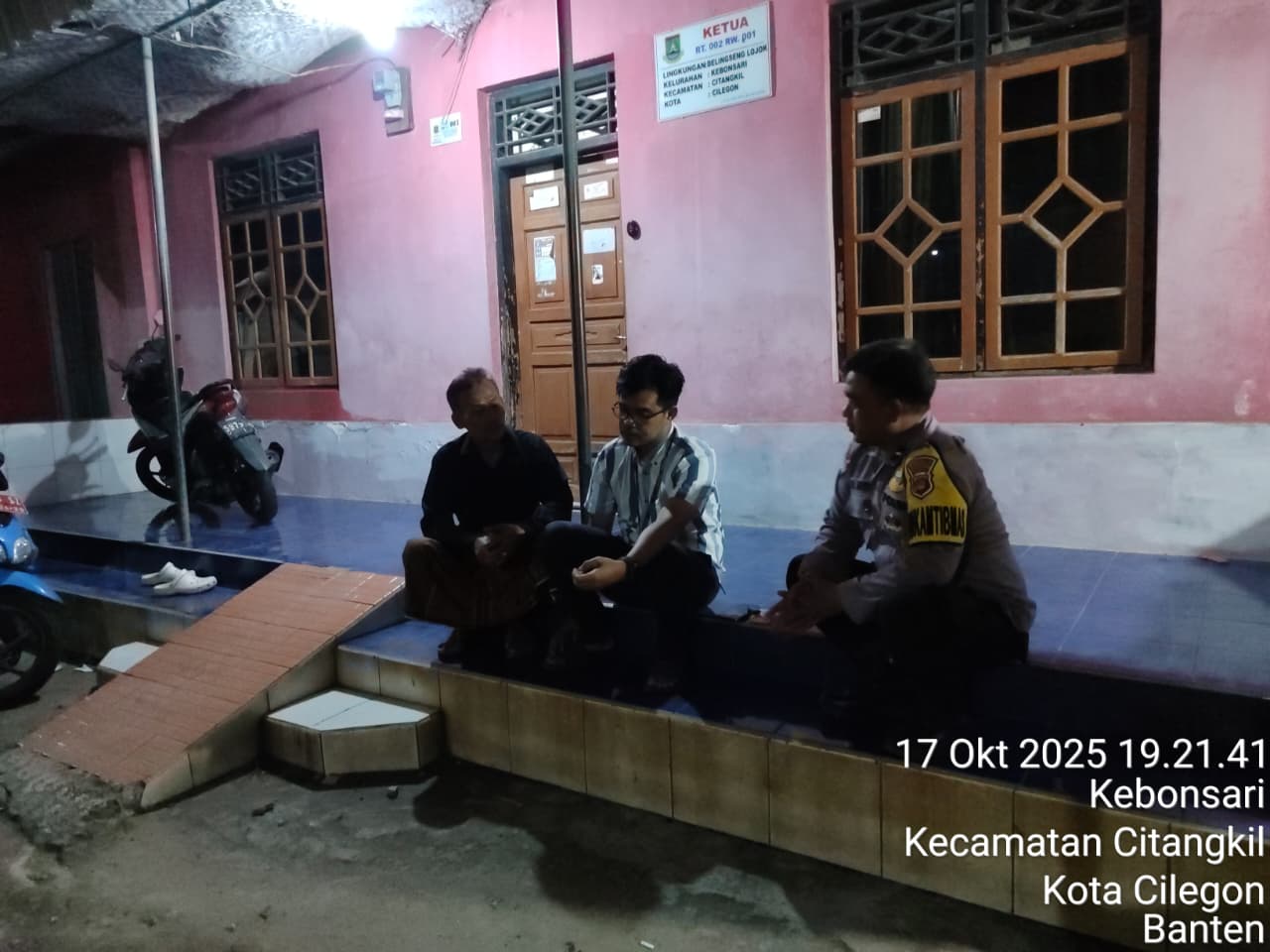 Cilegon - Bhabinkamtibmas Polsek Ciwandan Polres Cilegon Polda Banten Lakukan Sambang Malam guna mengantisipasi aksi kejahatan pada daerah binaan dan memberikan rasa aman dan nyaman kepada warga binaan, Sabtu (18/10/2025).
