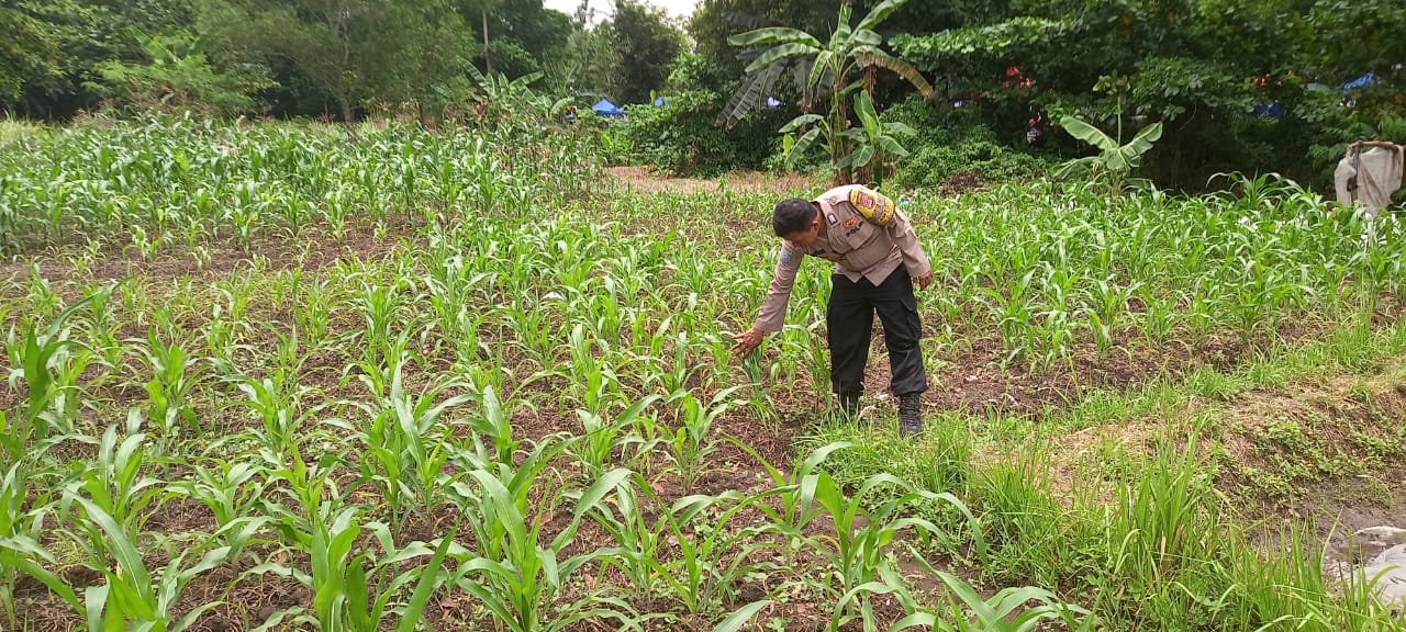 Bripka Agustoni, yang bertugas di Kelurahan Kota Bumi, terjun langsung ke lahan-lahan pertanian jagung milik warga. Ia berdialog dengan para petani, mendengarkan keluh kesah mereka, serta memberikan masukan terkait perawatan tanaman yang baik dan benar.
