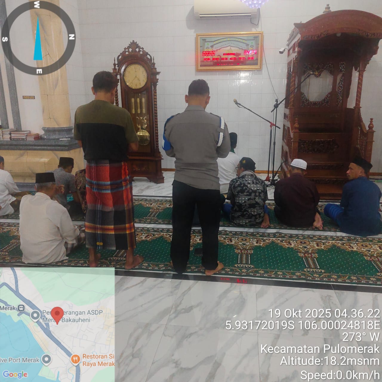 Cilegon – Personil Kskp Merak Polres Cilegon Polda Banten menggelar kegiatan Pembinaan Rohani dengan shalat subuh keliling di Masjid Yang ada Di Daerah hukum Polsek Kp Merak Polres Cilegon Polda Banten, Minggu (19/10/2025).