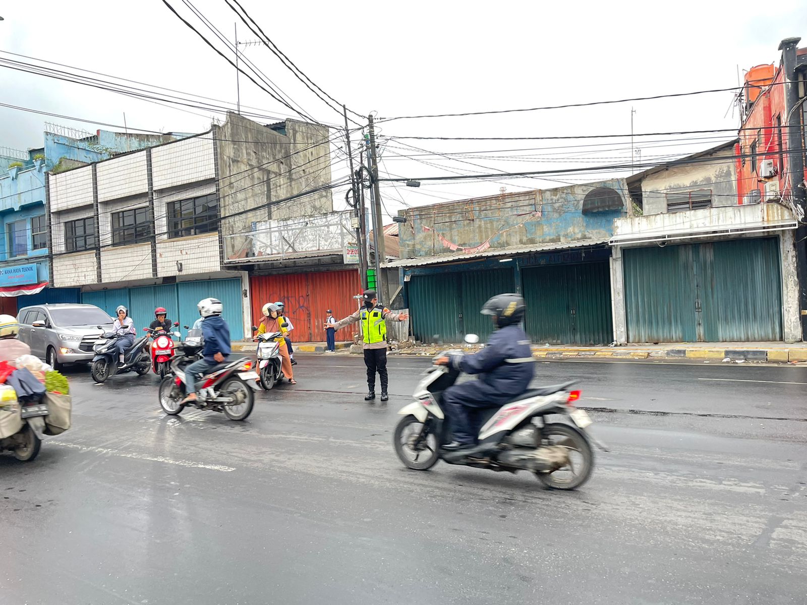 Cilegon,Polres Cilegon Polda Banten Pada Senin 20/10/2025 Pukul 06.30 Wib, Personil Siwas Polres Cilegon, Brigpol Hadi sudrajat melaksanakan kegiatan pengaturan arus lalu lintas di Jalur Protokol jalan utama Kota Cilegon tepat nya di jalur protokol Kota Cilegon.
