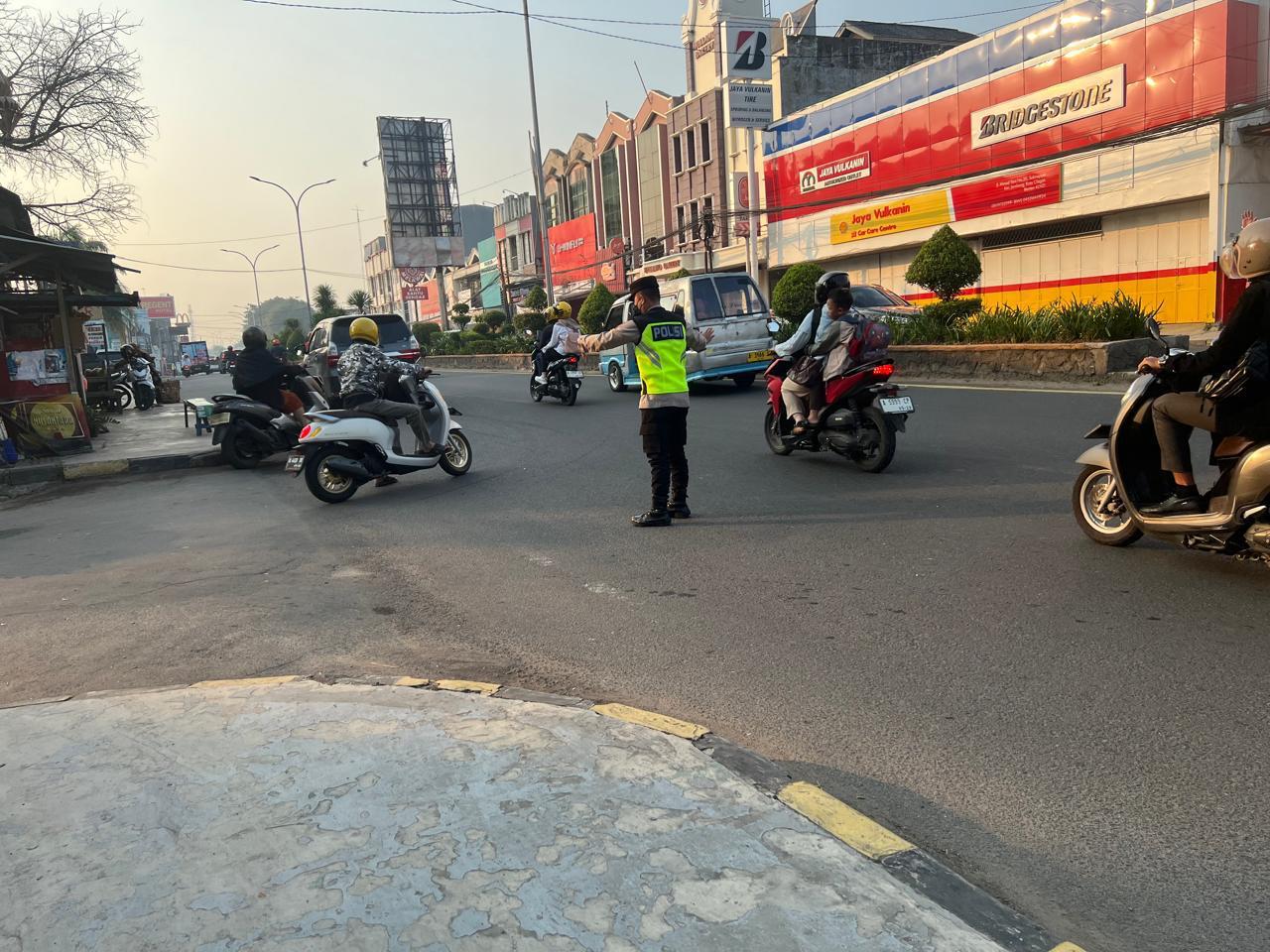 Cilegon,Polres Cilegon Polda Banten Pada Senin 20/10/2025 Pukul 06.30 Wib, Personil Siwas Polres Cilegon, Brigpol Hadi sudrajat melaksanakan kegiatan pengaturan arus lalu lintas di Jalur Protokol jalan utama Kota Cilegon tepat nya di jalur protokol Kota Cilegon.