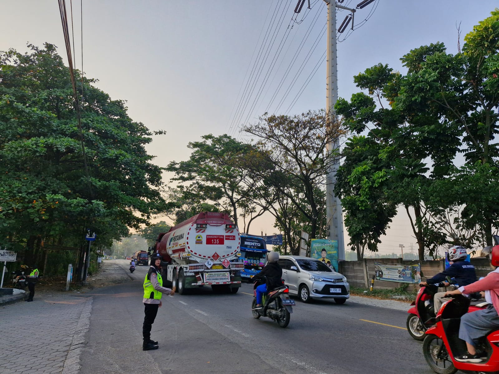 Cilegon,Polres Cilegon Polda Banten Pada Senin 20/10/2025 Pukul 06.30 Wib, Personil Siwas Polres Cilegon, Brigpol Hadi sudrajat melaksanakan kegiatan pengaturan arus lalu lintas di Jalur Protokol jalan utama Kota Cilegon tepat nya di jalur protokol Kota Cilegon.
