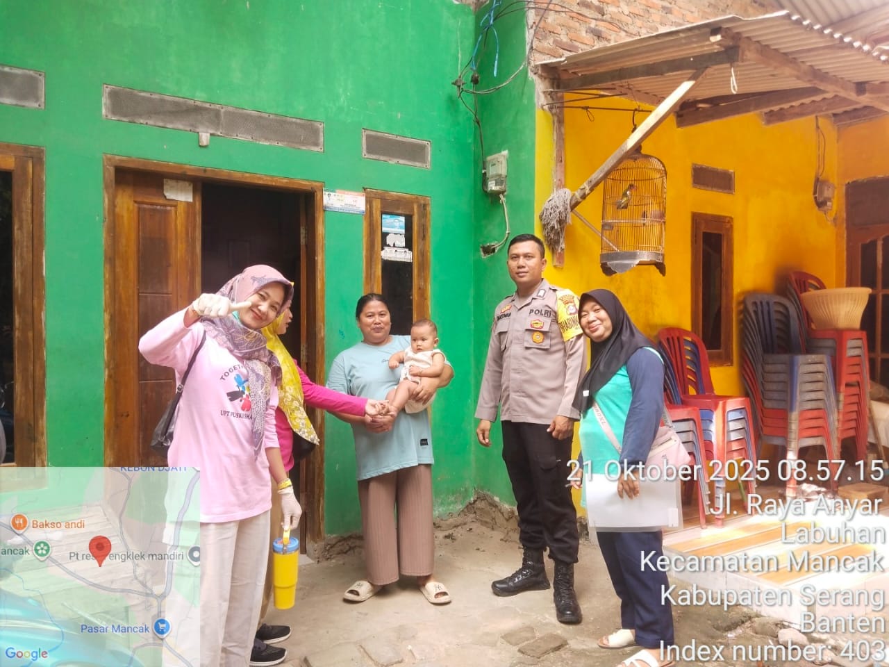 Mancak - Sebagai Pengemban Fungsi Harkamtibmas, Bhabinkamtibmas Melaksanakan Kegiatan sambang Pendampingan pelaksanaan grebek atau kejar imunusi yang dilaksanakan oleh puskesmas Mancak, serta melaksanakan giat program KAPOLRES CILEGON TRENDING dan giat program QUICK WIN PRESISI SELASA,(21/10/2025).