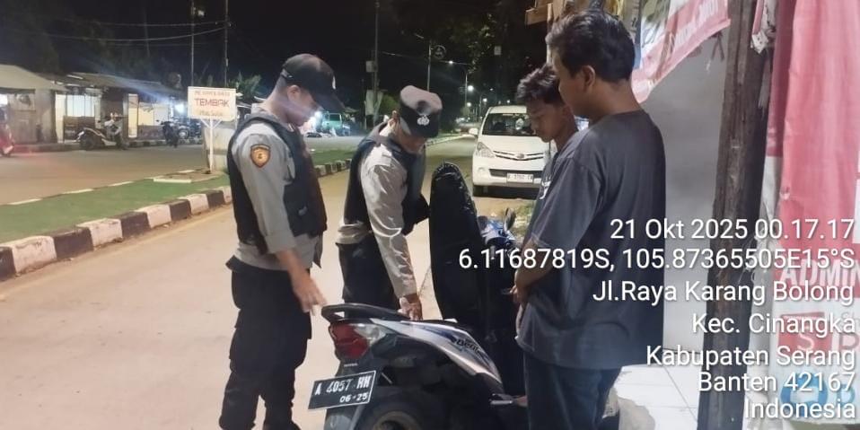 *Cilegon* – Dalam Rangka Pencegahan Kejahatan Jalanan dan Memelihara situasi keamanan dan menjaga serta memberikan rasa aman dan nyaman di masyarakat,Salah satu upaya untuk mewujudkan hal tersebut sebagaimana yang dilakukan oleh Personil Polsek Cinangka Polres Cilegon Polda Banten melaksanakan giat patroli blue light malam hari hingga menjelang pagi, Selasa (21/10/2025).