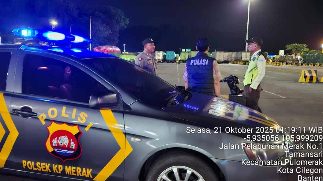 Cilegon - Personil Polsek Kskp Merak Polres Cilegon melaksanakan patroli di kawasan pelabuhan merak memberikan rasa aman dan damai, Selasa (21/10/2025)