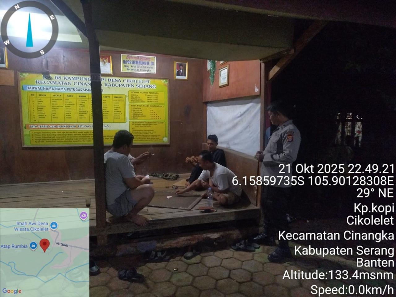 *Polres Cilegon* || Personil Bhabinkamtibmas Polsek Cinangka melaksanakan Program Komandan Wish Kapolda Banten RONDA SATKAMLING menyampaikan komunikasi dengan Petugas Siskamling agar berperan aktif dalam menciptakan Harkamtibmas yang aman dan Kondusif, Selasa (22/10/2025).