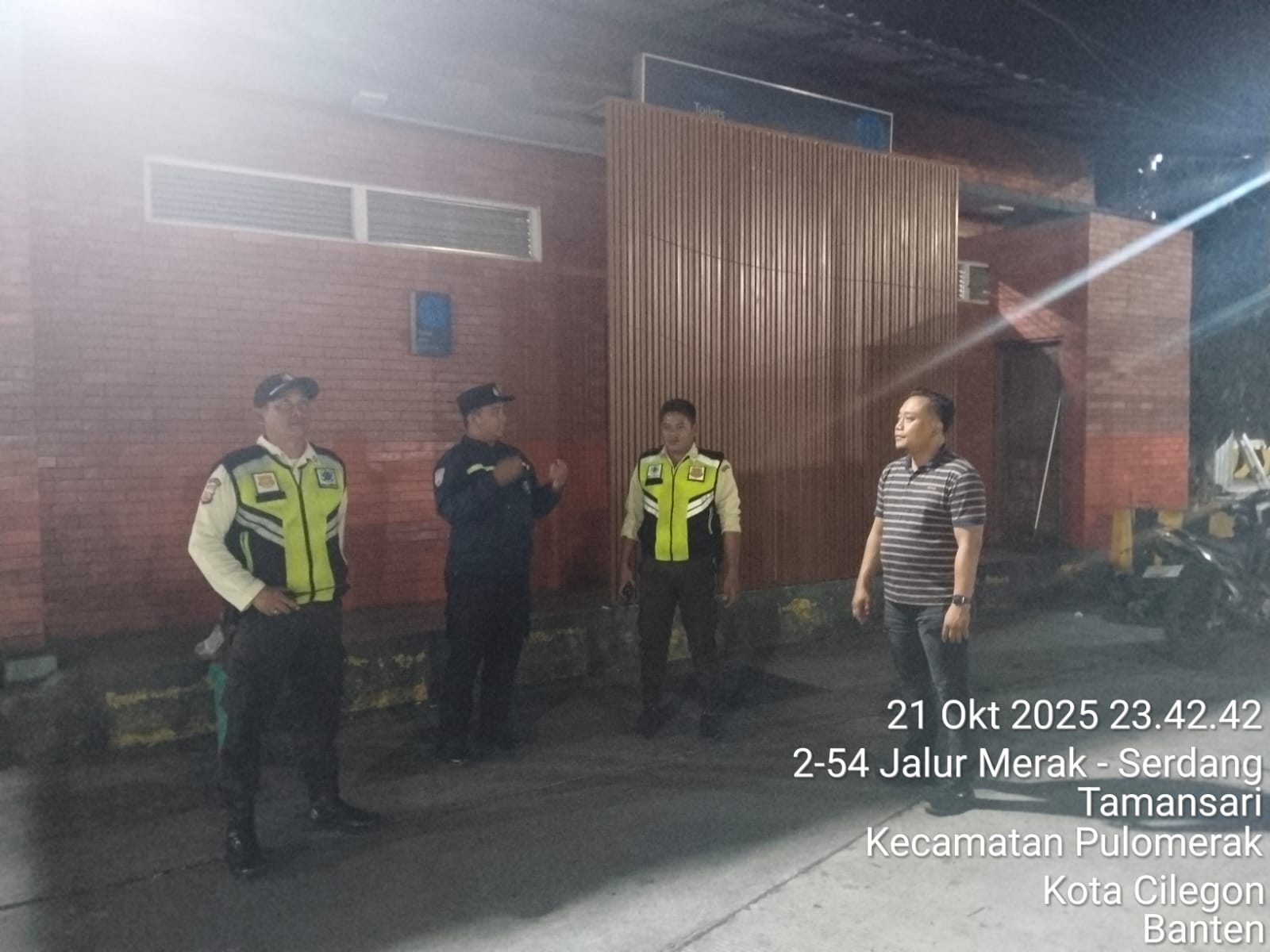 Cilegon - Personil Polsek Kskp Merak Polres Cilegon melaksanakan patroli di kawasan pelabuhan merak memberikan rasa aman dan damai, Rabu (22/10/2025)