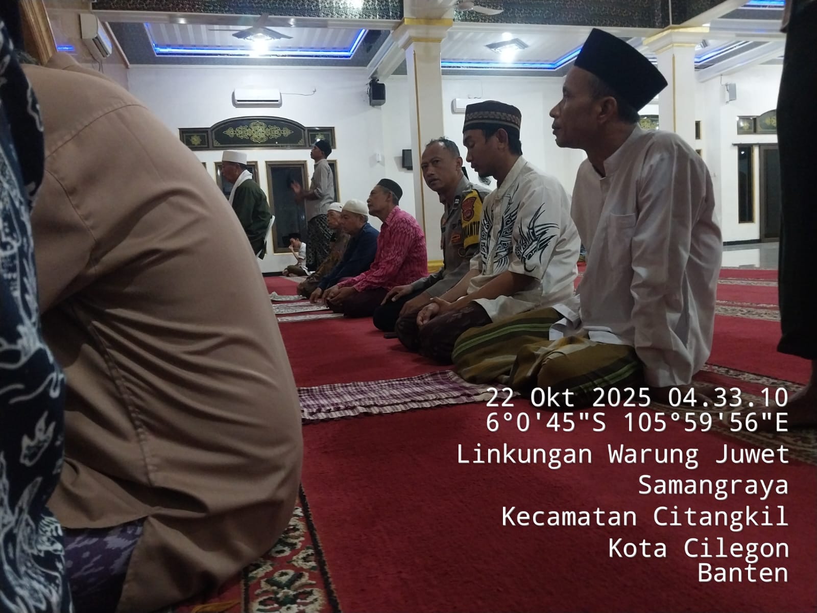 Cilegon - Dalam Rangka Implementasi Program Subuh Keliling Kapolda Banten Dan Kapolres Cilegon Polda Banten Bhabinkamtibmas Polsek Ciwandan Polres Cilegon Polda Banten melakukan Sholat Subuh Berjama’ah bersama warga masyarakat, Rabu (22/10/2025).