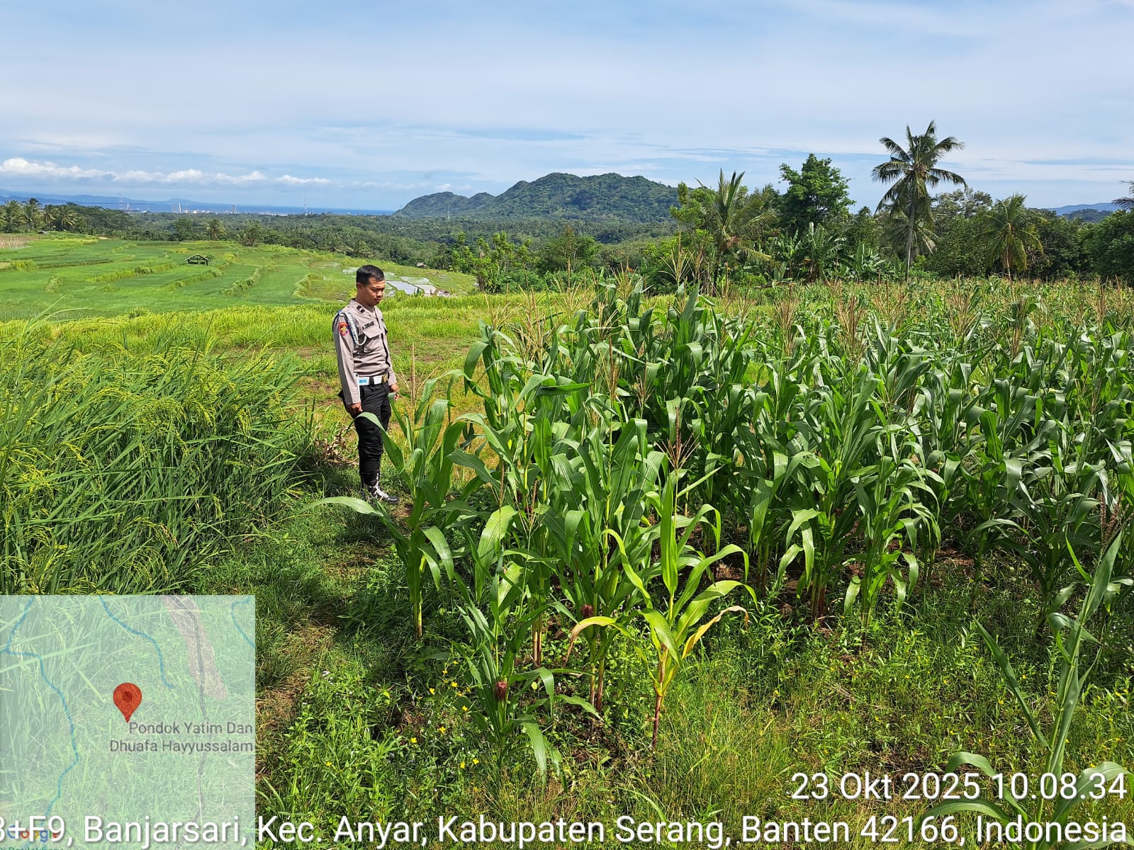 Cilegon - Polsek KP Banten Polres Cilegon Polda Banten berkolaborasi dengan Polsek Mancak melaksanakan giat pengecekan lahan Pertanian Jagung. Kamis (23/10).