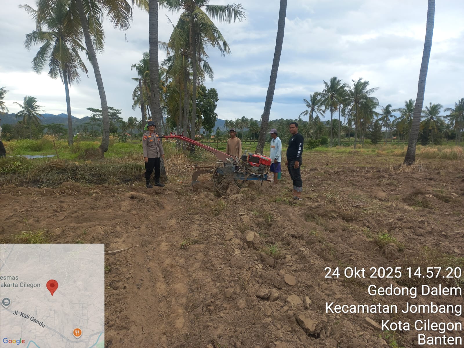 Cilegon - Melaksanakan program pemerintah, penanaman jagung dalam program ketahanan pangan, personil Polsek Kp Merak Polres Cilegon Polda Banten melaksanakan kegiatan peninjauan serta monitoring lokasi yang nantinya akan ditanami bibit jagung unggul di Desa Mangkunegara Kecamatan Bojonegara, Kabupaten Serang, Jumat (24/10/2025).