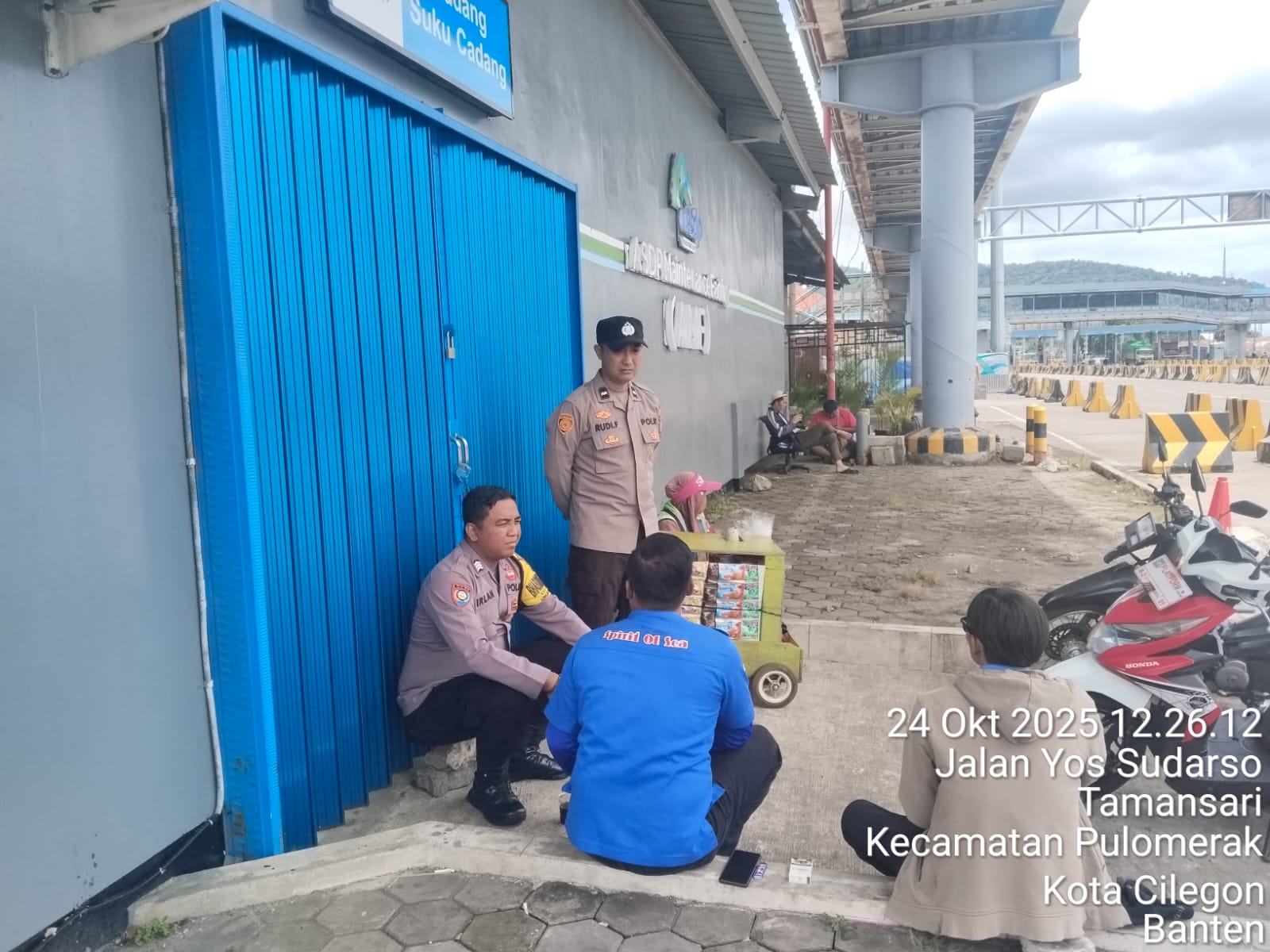Cilegon - Personel Polsek Kskp Merak Polres Cilegon Polda Banten melaksanakan sambang dan patroli kawasan pelabuhan merak dalam rangka menjaga Harkamtibmas di Kawasan Pelabuhan Merak, Jumat (24/10/2025).