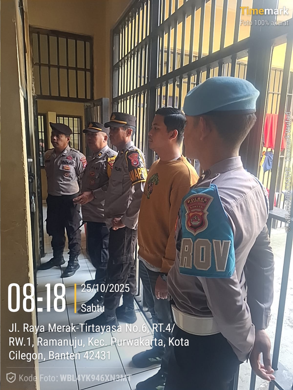 Cilegon,Personel piket Satreskrim Polres Cilegon Polda Banten beserta piket fungsi lainya melakukan pengecekan jumlah narapidana dan ruang di setiap kamar rutan di polres cilegon. Kegiatan ini bertujuan agar terus memonitor keadaan para narapidana di rutan polres cilegon dan menghindari hal-hal yang tidak diinginkan serta mengecek kekuatan setiap ruangan di tahun 2025. Sabtu (25/10/2025).