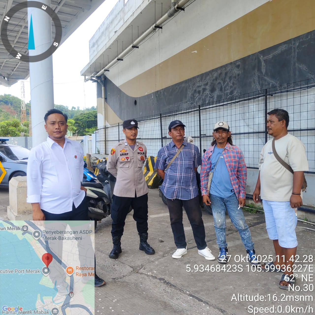 Cilegon - Personel Polsek Kskp Merak Polres Cilegon Polda Banten melaksanakan sambang dan patroli kawasan pelabuhan merak dalam rangka menjaga Harkamtibmas di Kawasan Pelabuhan Merak, Senin (27/10/2025).