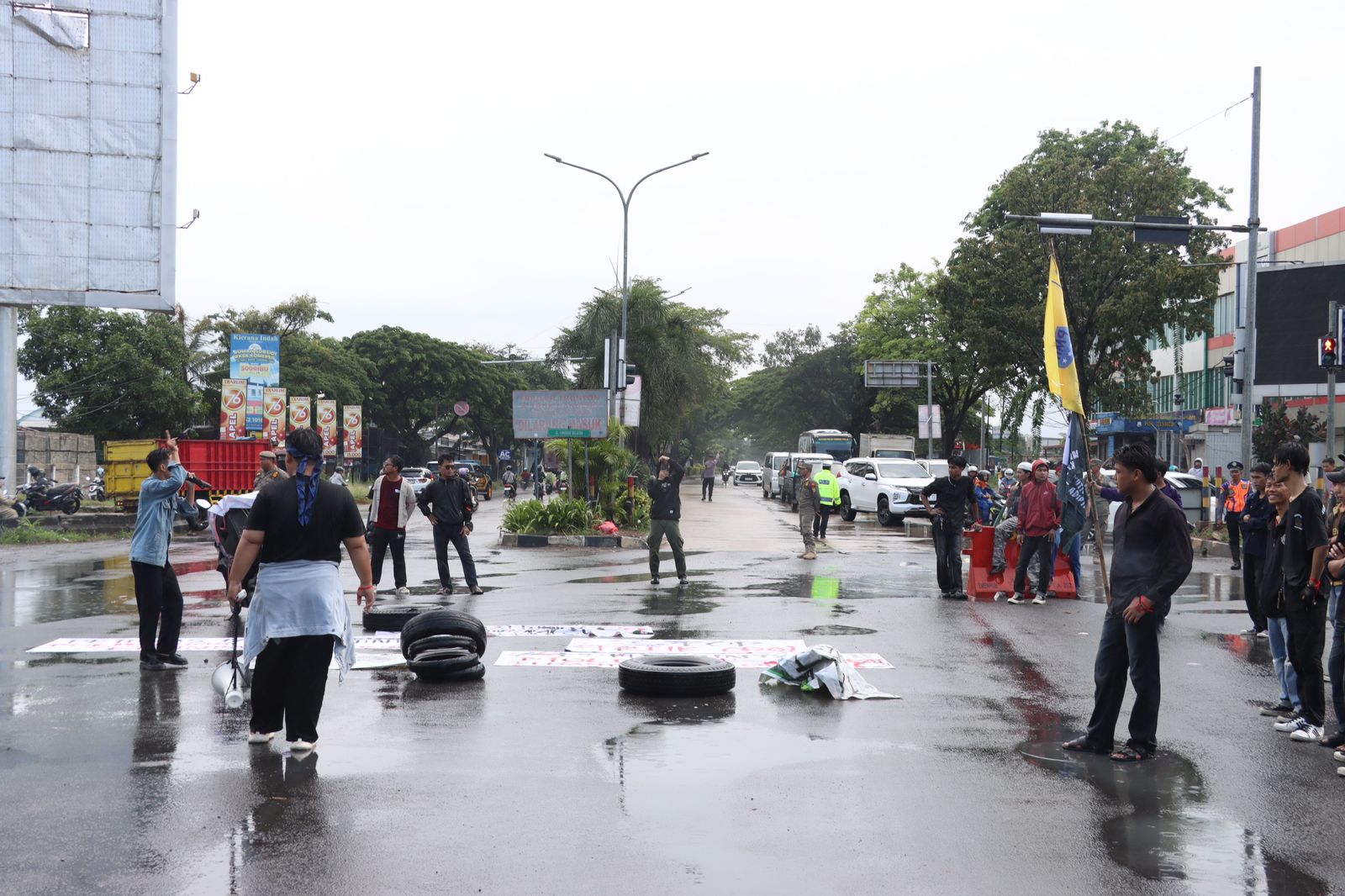Pada pukul 14.30 WIB, massa melakukan pembakaran ban di simpang jalan sebagai bentuk ekspresi aksi. Menyikapi situasi tersebut, personel Polres Cilegon tetap mengedepankan pendekatan persuasif dan humanis agar situasi tetap terkendali.
