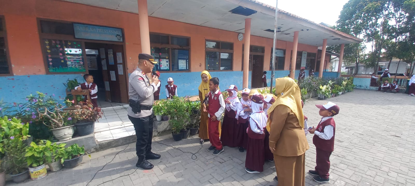 Cilegon – Kapolsek Ciwandan Polres Cilegon Polda Banten KOMPOL Andi Suherman Bersama Bhabinkamtibmas Kelurahan Tegalratu Polsek Ciwandan Polres Cilegon Polda Banten BRIGADIR Dede Abu Menyambangi Sekolah SDN Tegal Kidongdong,Guna Menyampaikan Pesan-pesan Kamtibmas Dan Memberikan Imbauan, Senin (27/10/2025).