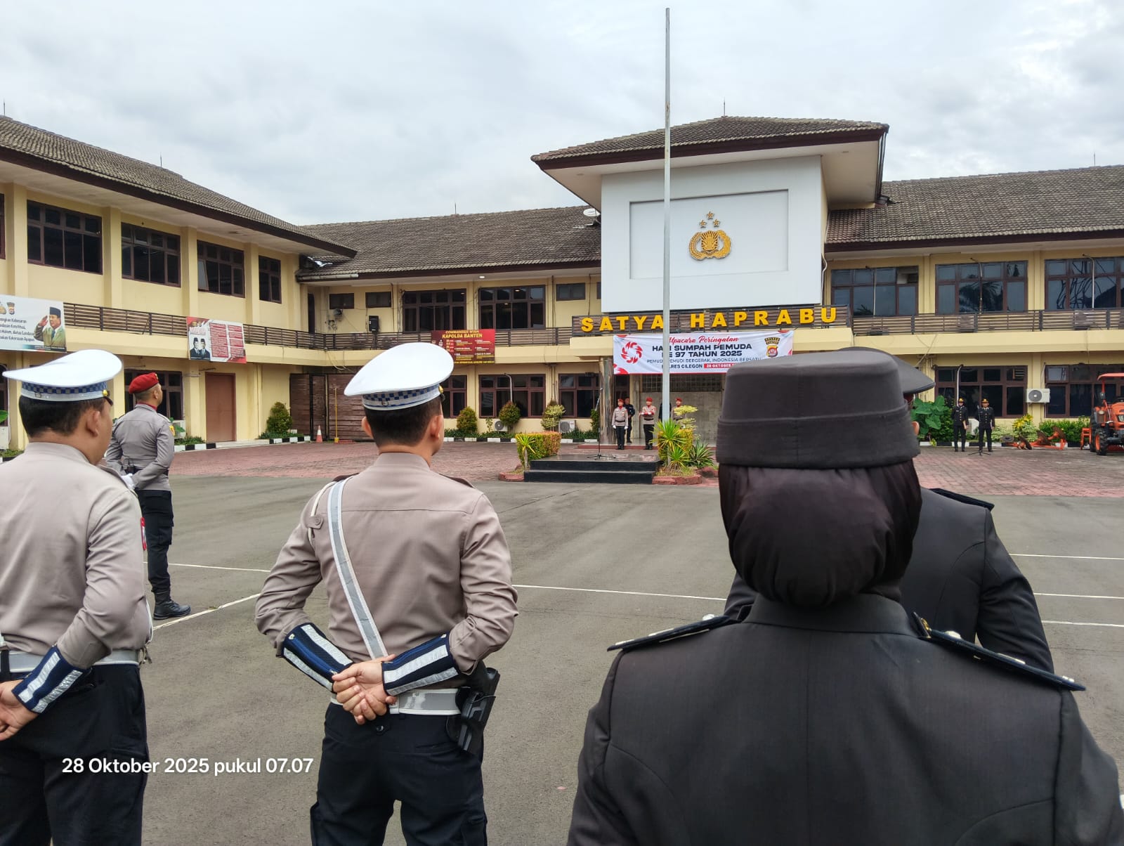 Polres Cilegon melaksanakan upacara peringatan Hari Sumpah Pemuda ke-97 di halaman Mapolres Cilegon. Upacara ini diikuti oleh seluruh personel Polres Cilegon dan bertujuan untuk memperingati semangat Sumpah Pemuda yang diikrarkan pada tanggal 28 Oktober 1928.