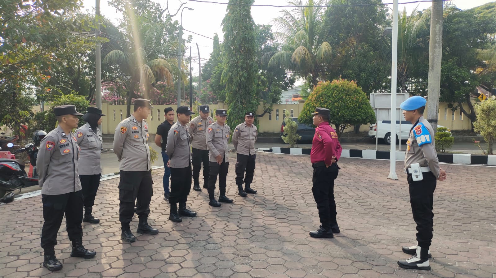 Polres Cilegon Pengechekan kehdiran anggota yang sedang melaksanakan kegiatan apel peleton