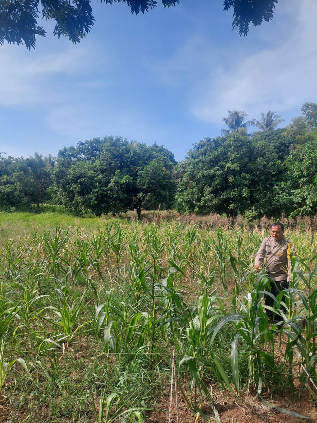 Pantau lahan jagung kelompok tani Sinarjaya Kec. Puloampel Merak Banten oleh Bhabinkamtibmas Polsek Puloampel Polres Cilegon.