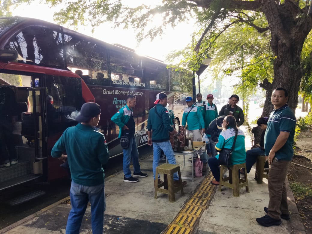 Kegiatan pengamanan dilaksanakan untuk memastikan situasi tetap aman, tertib, dan kondusif selama proses pemberangkatan hingga perjalanan para peserta aksi menuju lokasi kegiatan di Jakarta.