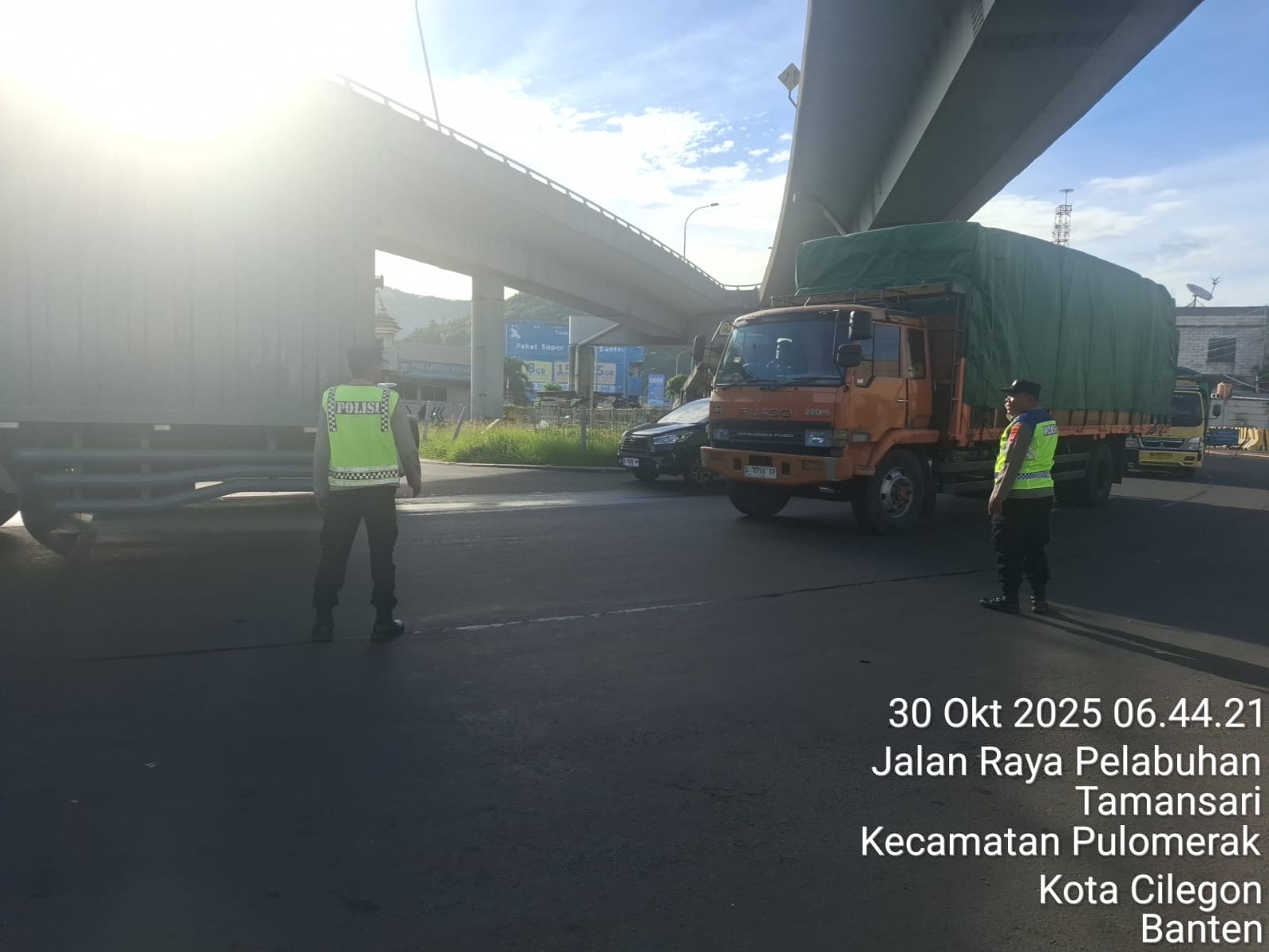 Polsek KSKP Merak Atur Arus Kendaraan R4 Menuju Kapal Ferry di Pelabuhan Merak