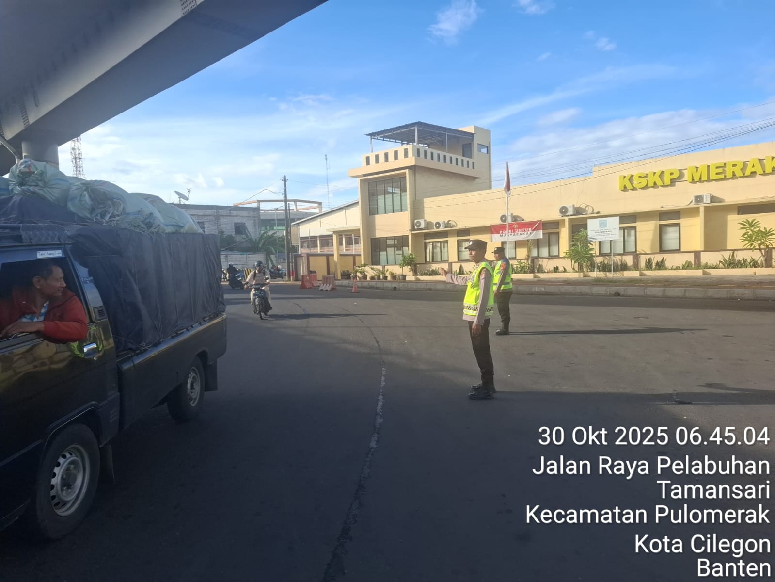 Cilegon - Dalam rangka peningkatan pelayanan prima kepada masyarakat, Kskp Merak Polres Cilegon Polda Banten melaksanakan pengaturan antrian R4 yang akan masuk ke Kapal Ferry di Pelabuhan Merak, Kamis (30/10/2025).