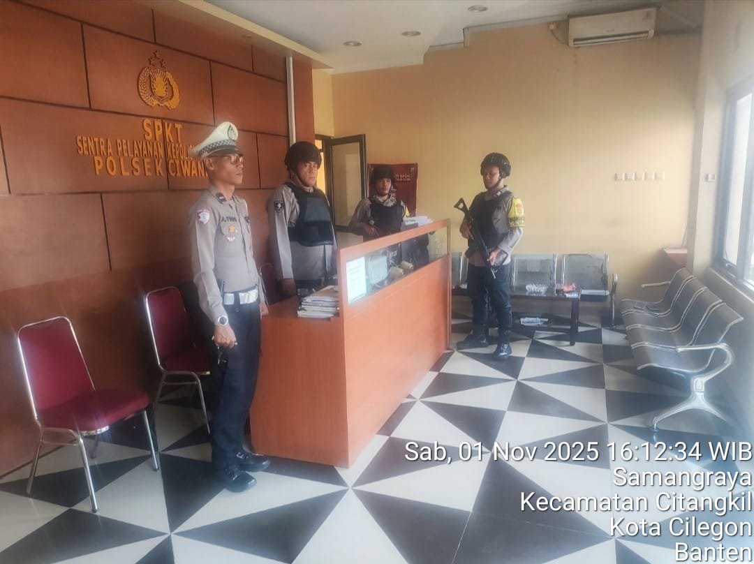 Cilegon - Guna mengantisipasi adanya potensi ancaman dan gangguan terhadap keamanan kantor maupun keselamatan personel piket jaga, Personil Polsek Ciwandan Polres Cilegon Polda Banten selalu tingkatkan kesiapsiagaan dan kewaspadaan dengan rutin menggelar kegiatan Sistem Pengamanan Mako (Sispam Mako), Sabtu (01/11/2025).