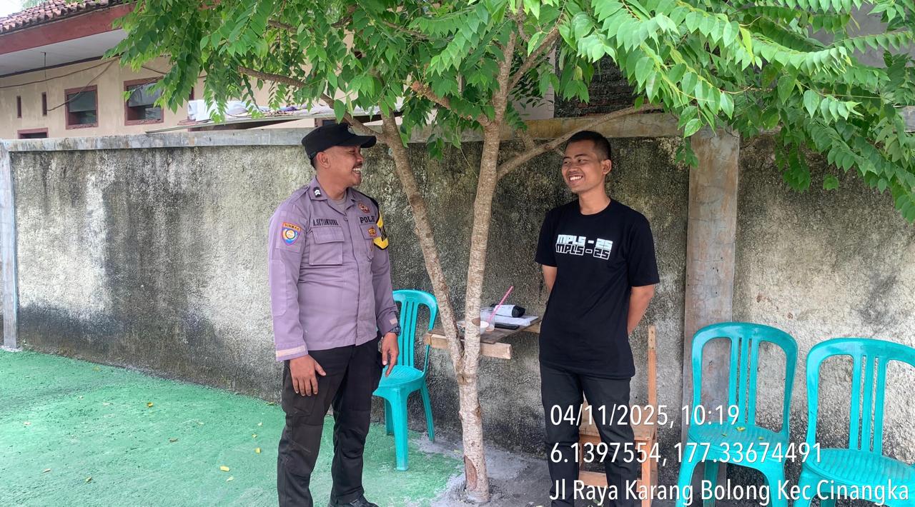 *CILEGON* dalam Rangka Mengantisipasi Gktm di wilayah Personil Bhabinkamtibmas Cinangka melaksanakan patroli Dialogis dengan Kepala Desa dan warga dan Menanyakan situasi Kamtibmas di wilayah dalam Rangka Menjaga Harkamtibmas di Desa Binaannya  Kecamatan Cinangka Kab. Serang. Selasa.(04/11/2025).